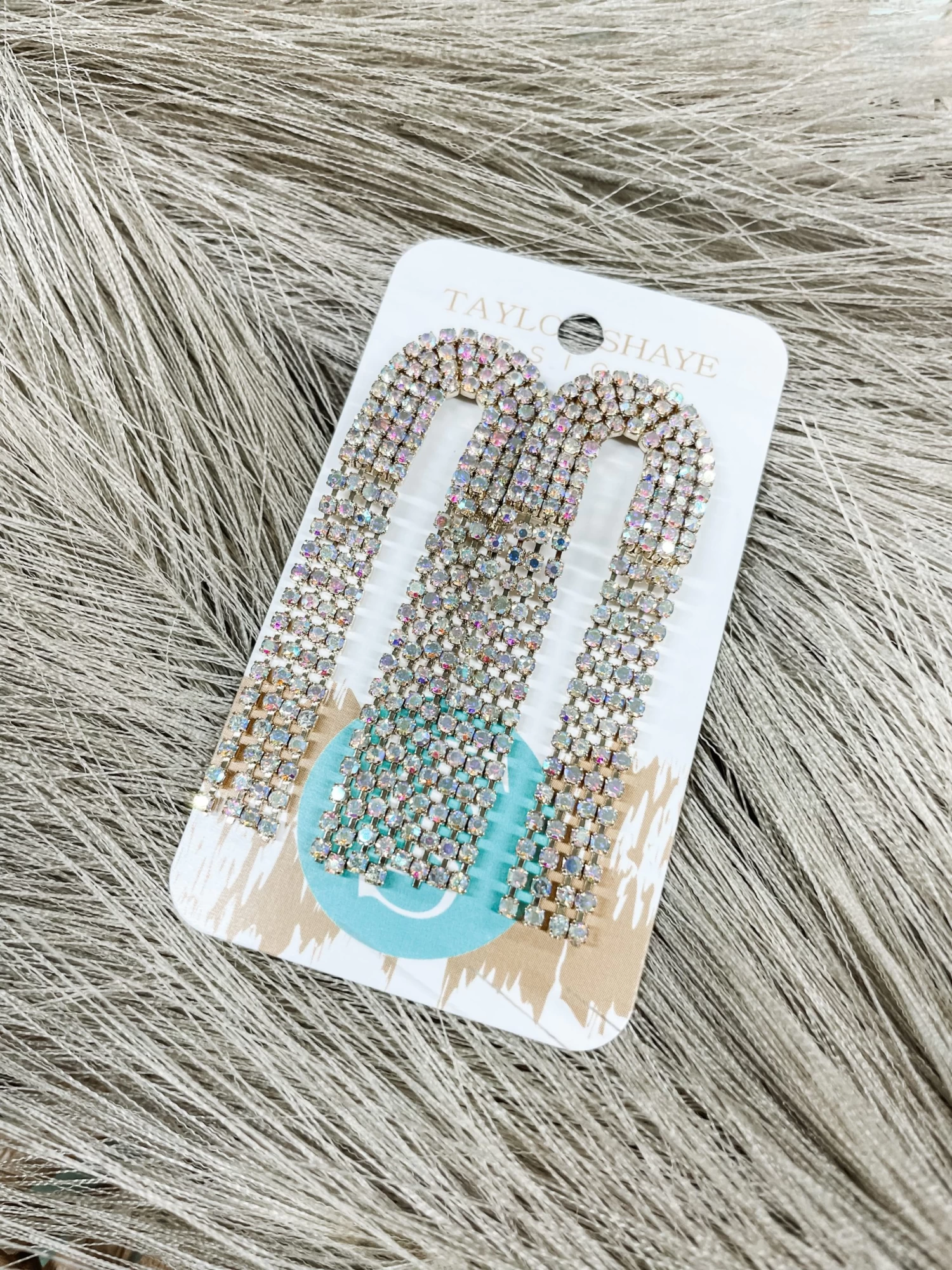 Alexa Rhinestone Chain Drop Earrings- Iridescent