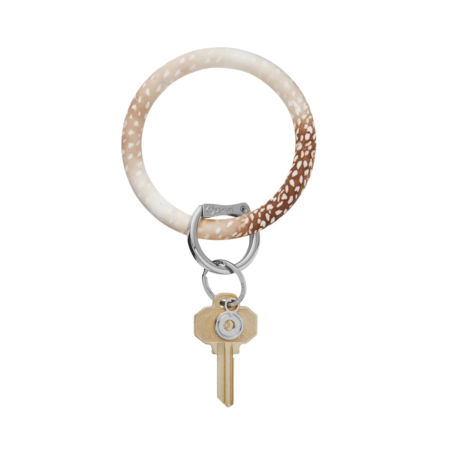 Take a walk on the wild side with a printed silicone Big O® Key Ring. Available in a wide range of animal prints and popular patterns, this best seller is luxe-looking but also ultra durable and water-resistant. The Original Big O® Key Ring is a one-size-fits-all bracelet key ring that can be worn on your forearm or above your elbow for hands-free ease. The patented, signature locking clasp clicks open and closed so you can contain your house keys, car keys, card case and more in one central, secure location.