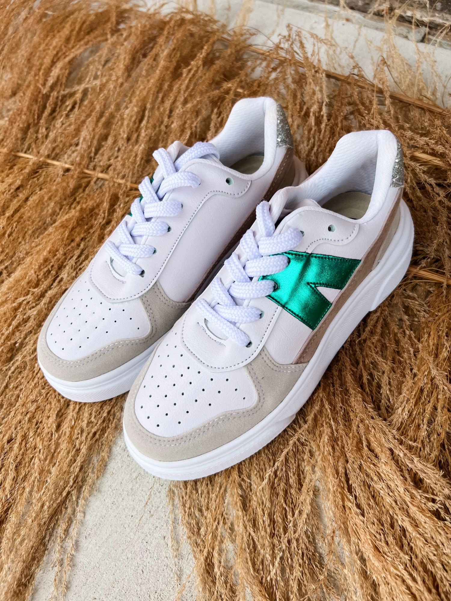 Look cute and feel comfy in these Aria 35 Sneakers! These stylish sneakers boast metallic green detail, a white sole, and minimalistic neutral detailing that can be paired with any ‘fit. Whether you’re running errands or dressin’ it up for brunch, these kicks are sure to take you from A to Z (in style!)