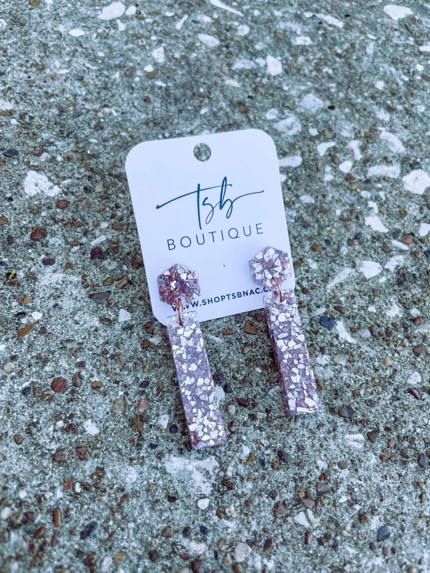 Bar Dangle Earrings- Rose Gold Crushed Glass