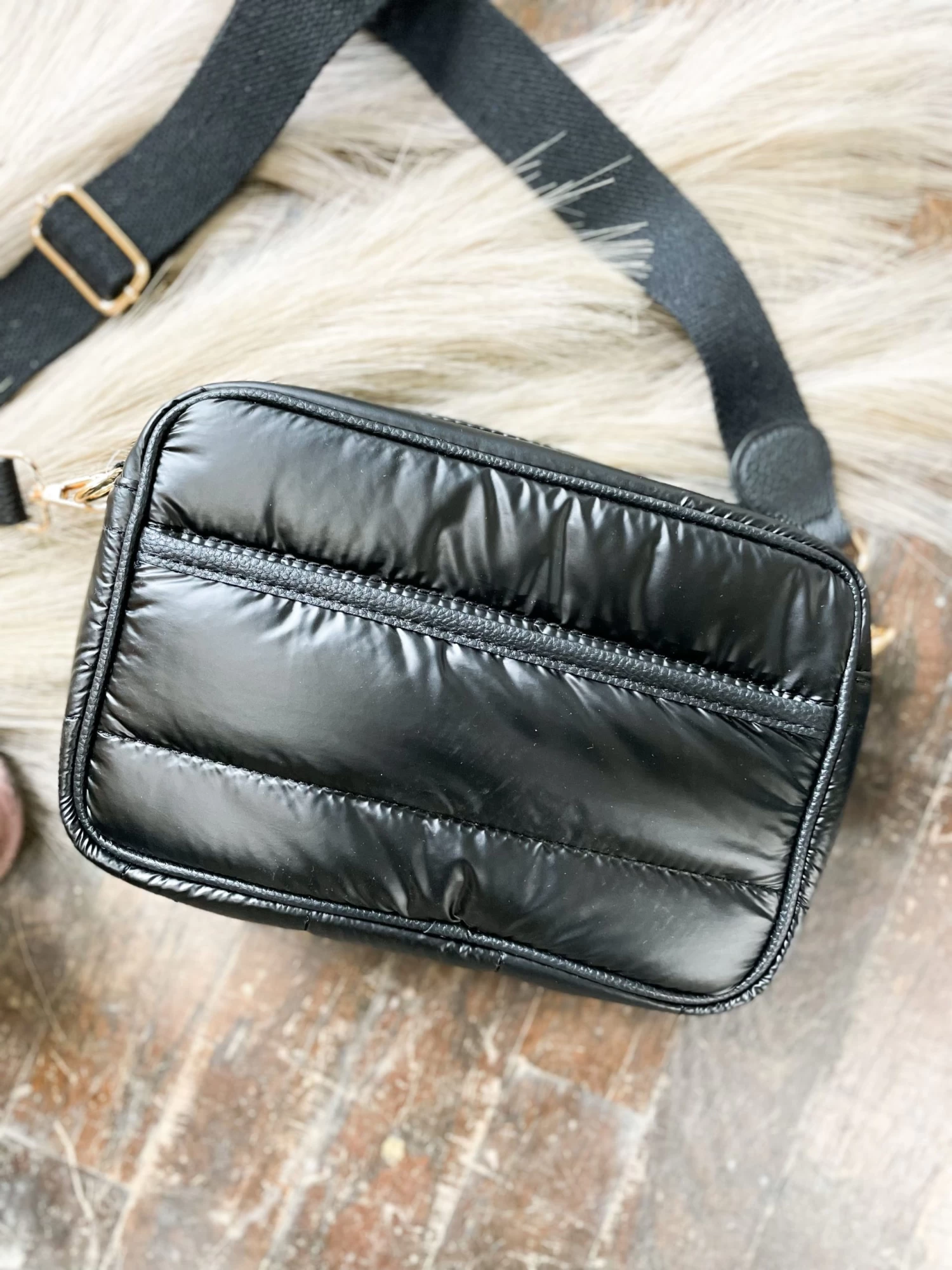 MUST HAVE: The Puffer Crossbody Bag! Designed with a top zipper closure + open storage with slip pockets + solid rectangle shape + puffer material + removable & adjustable crossbody strap!