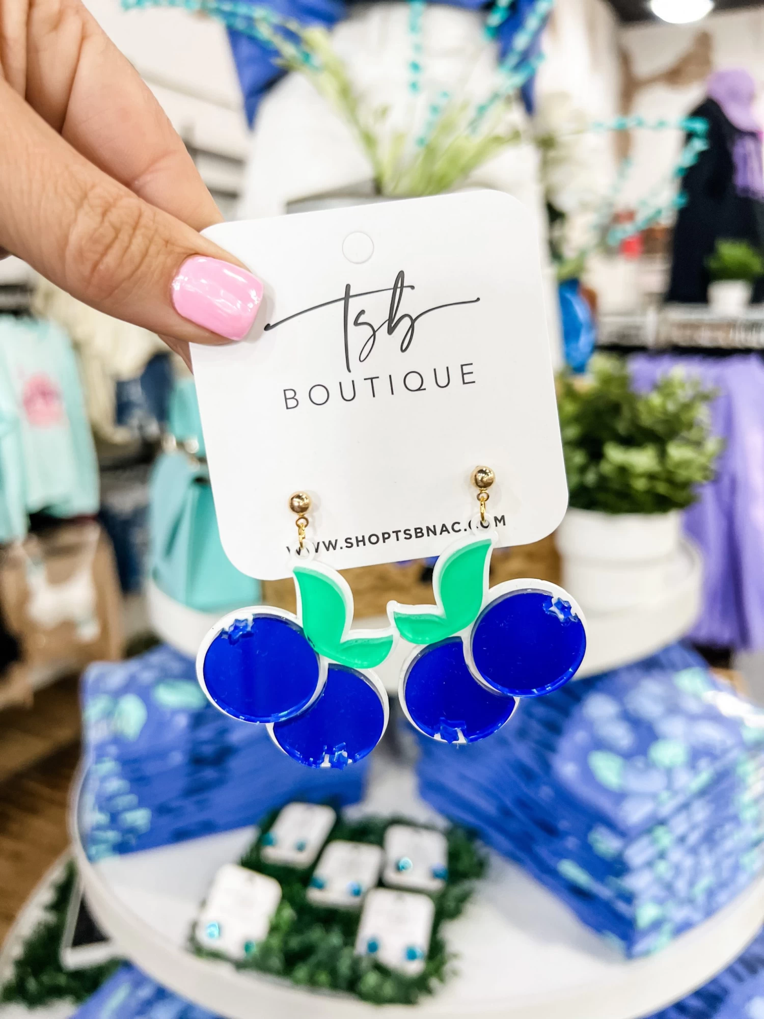 Vibrant and delicious, these Blueberry Acrylic Earrings add a fruity touch of style! Be ready for Blueberry Fest 2023 with these must have cuties — Complete the ultimate summery chic look!