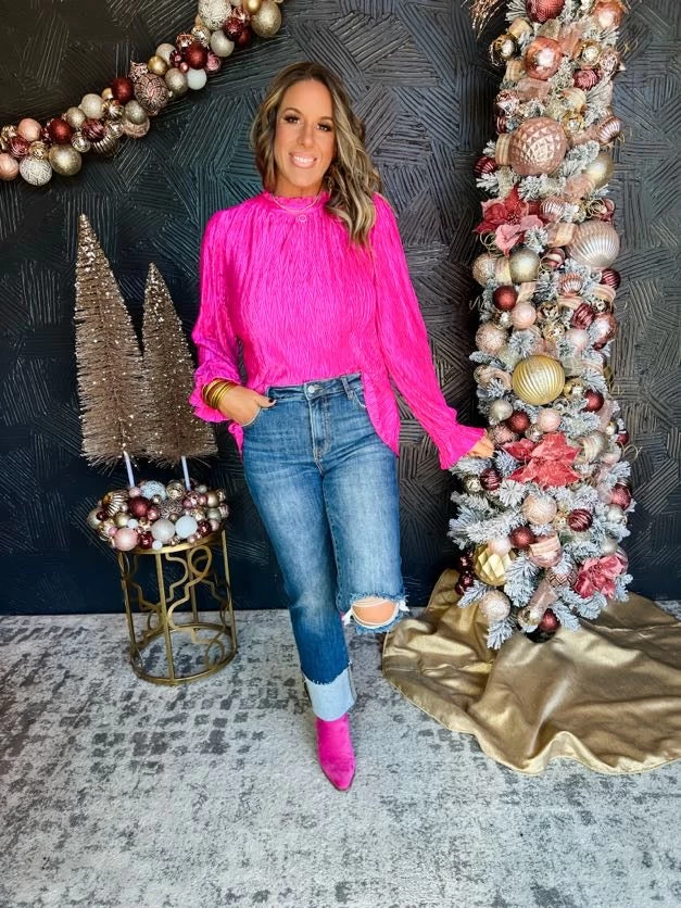 Styled With: Our Looking For You High Rise Cuffed Straight Jeans and Our Autumn Boot- Fuschia