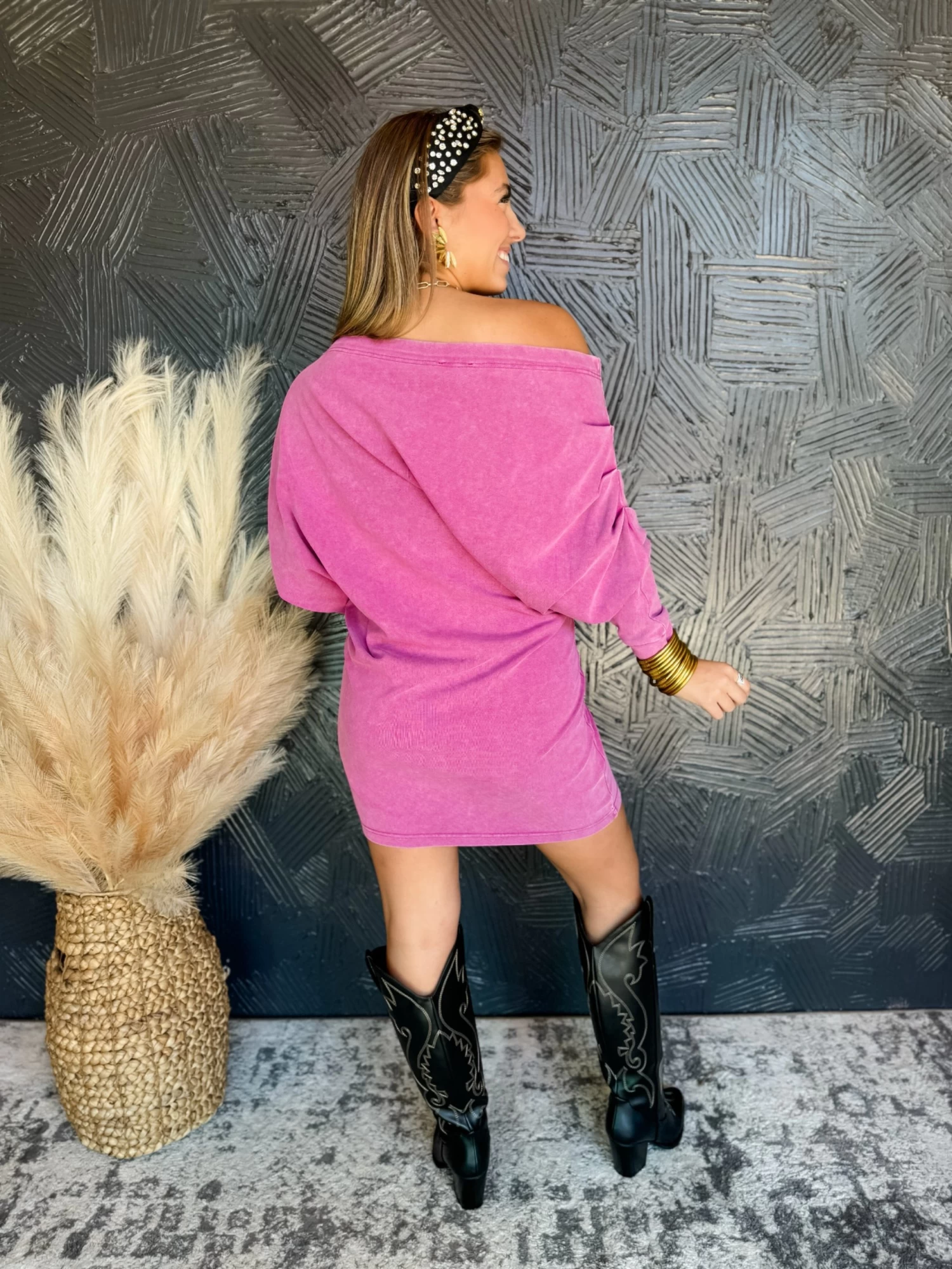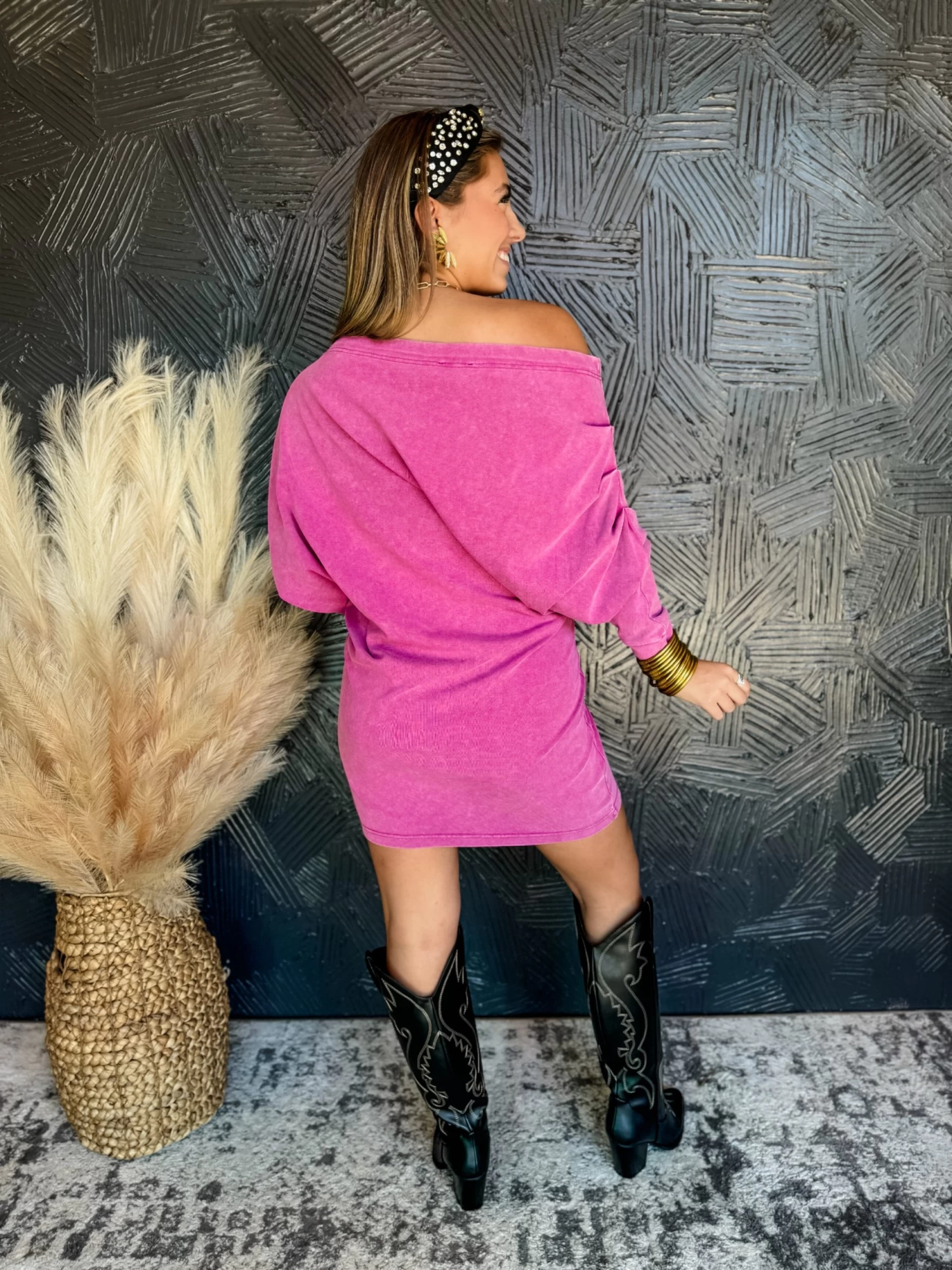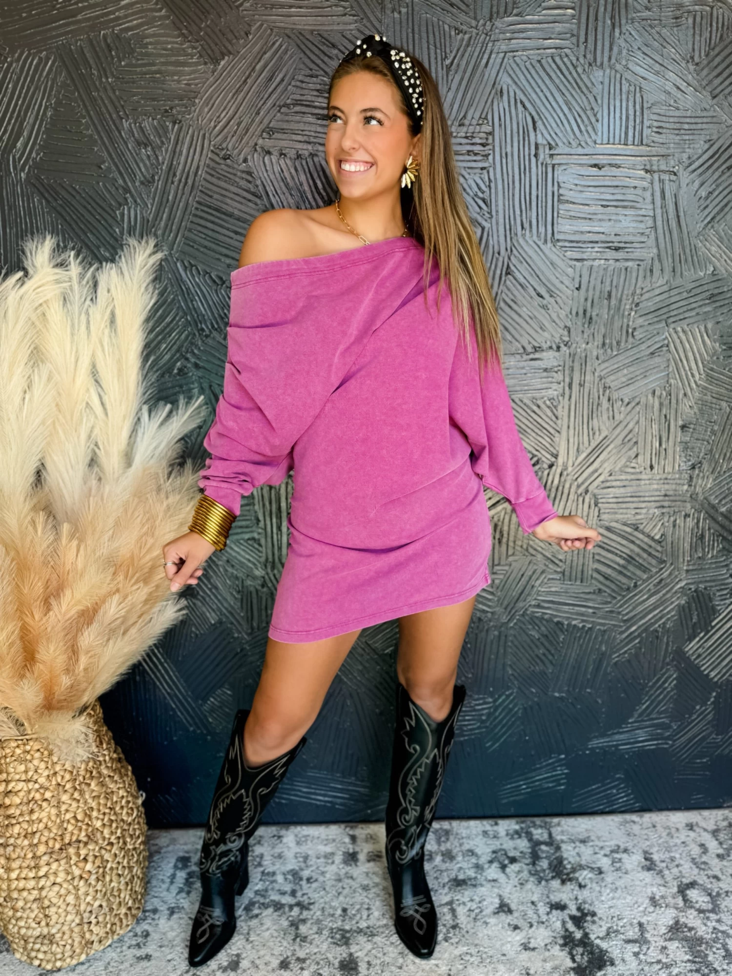 Styled With: Our Arcade Tall Western Boot-Black and Our Callie Crystal Headband-Black