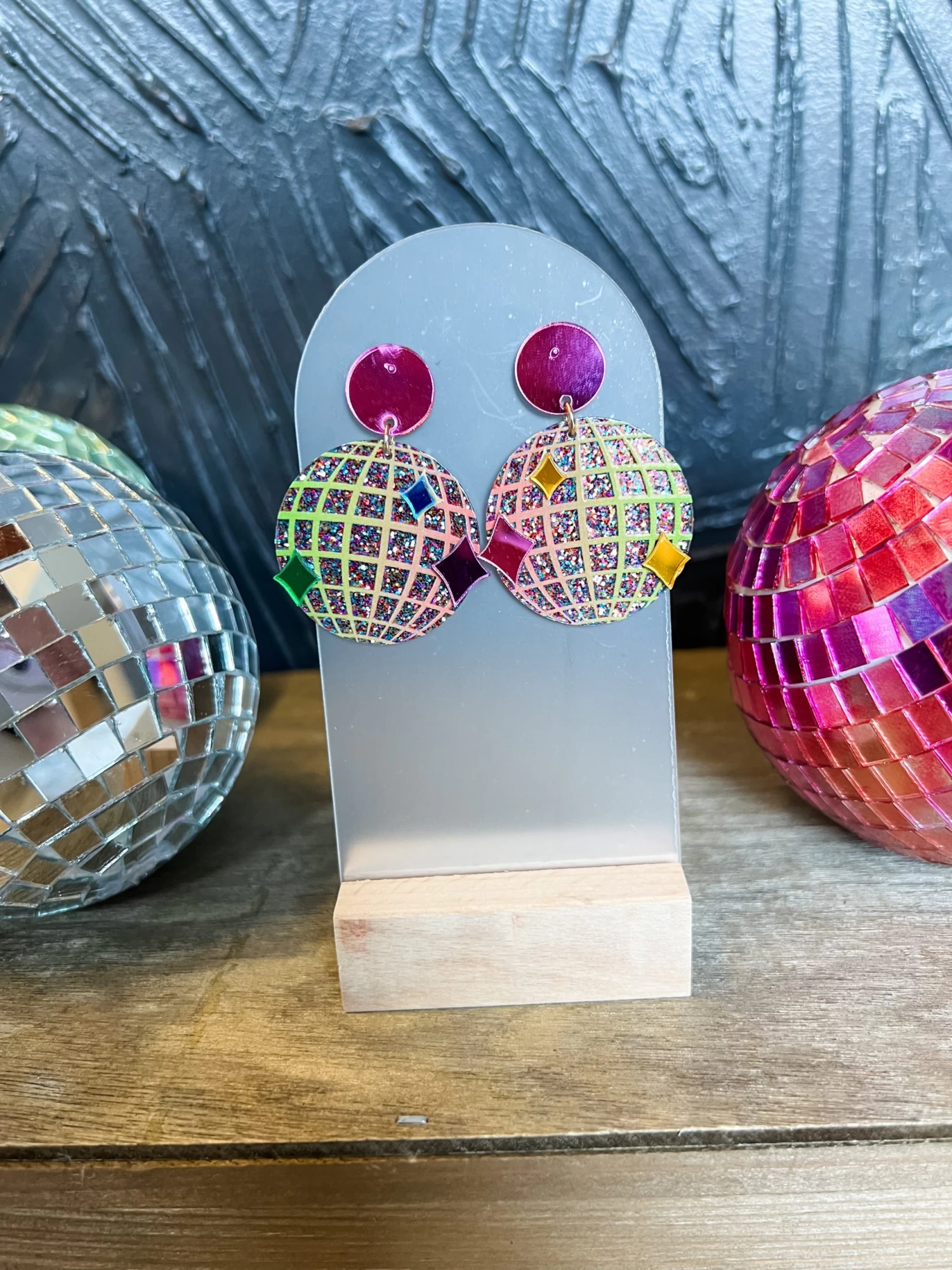 Turn up the fun with these dazzling Disco Party Earrings! A colorful rainbow of glittering hues adds eye-catching flair that’s perfect for dancefloors and everyday looks alike. Sparkle and shine your way through any event with these glam-tastic accessories!