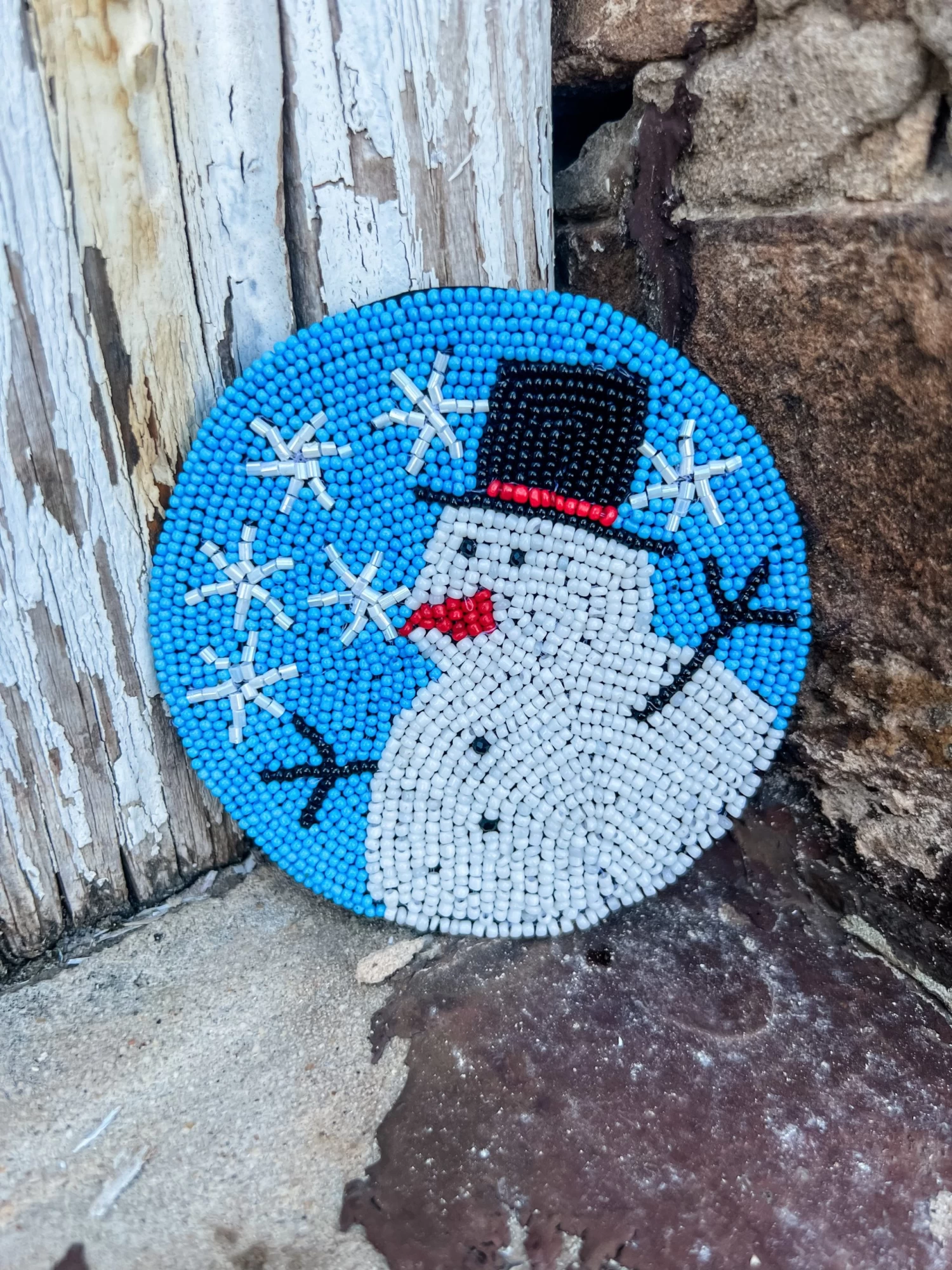 This festive coaster is sure to bring a bit of Frosty fun to your holiday decor! The blue beading, snowflake detail, and frosty texture create a winter wonderland vibe that will make you feel merry and bright. Add some festive cheer to your festivities!