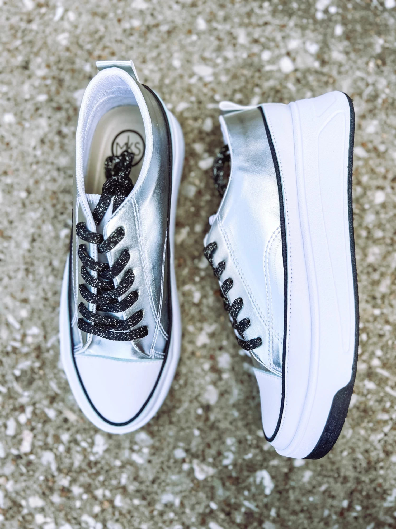 Move fast in Gaby 4 Sneakers! These stylish metallic kicks are perfect for a day of adventure, with a thick white sole for extra cushioning and comfort. Stay fashion forward in these new sneakers!
