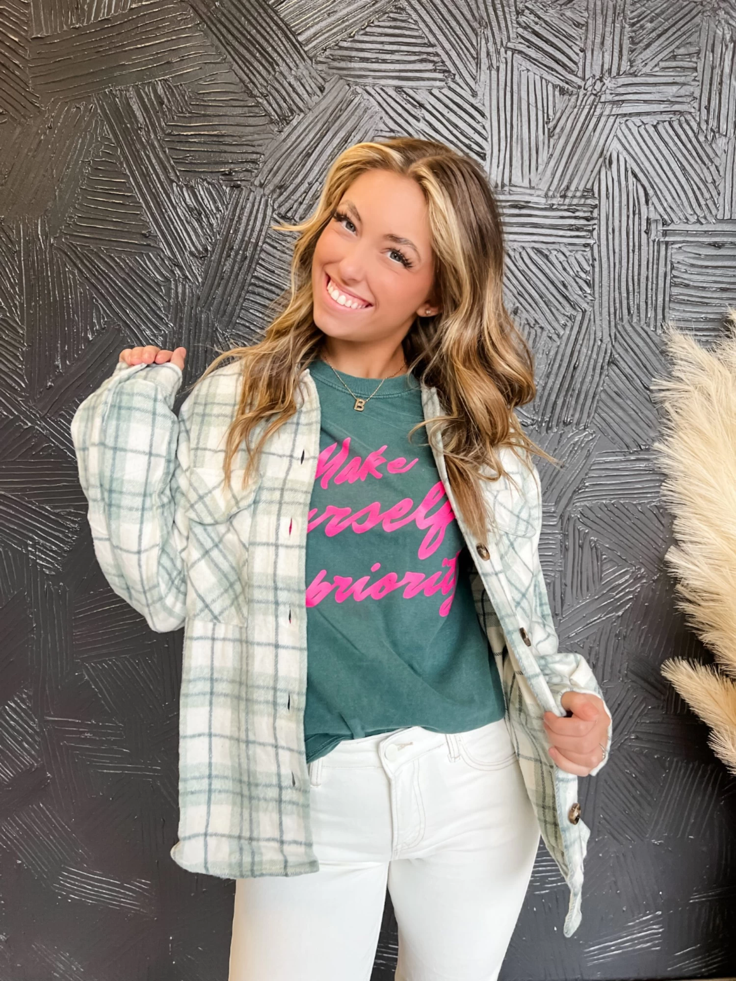 Styled With: Our Cant’t Handle Me Distressed Jeans-Cream, Make Yourself a priority Tee and Our Zen Slides Natural