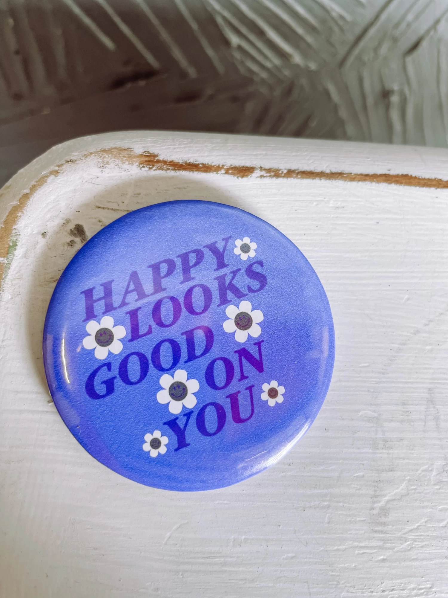Keep the day going in the Happy Looks Good On You Pin! Add this to your backpack, denim jacket, or use to round out the perfect gift! This pin is the perfect little added item!