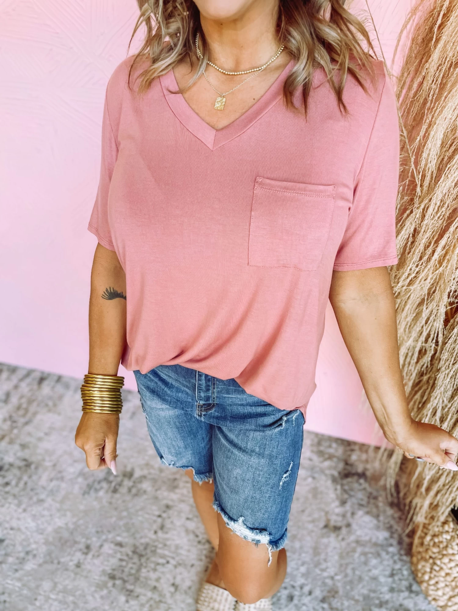 Keep Close Bamboo V Neck Top- Vintage Rose