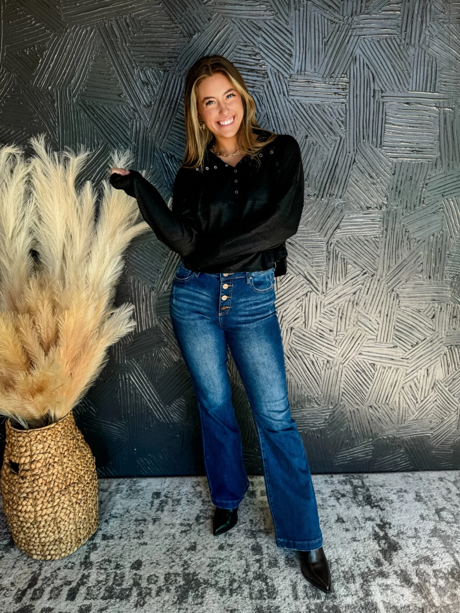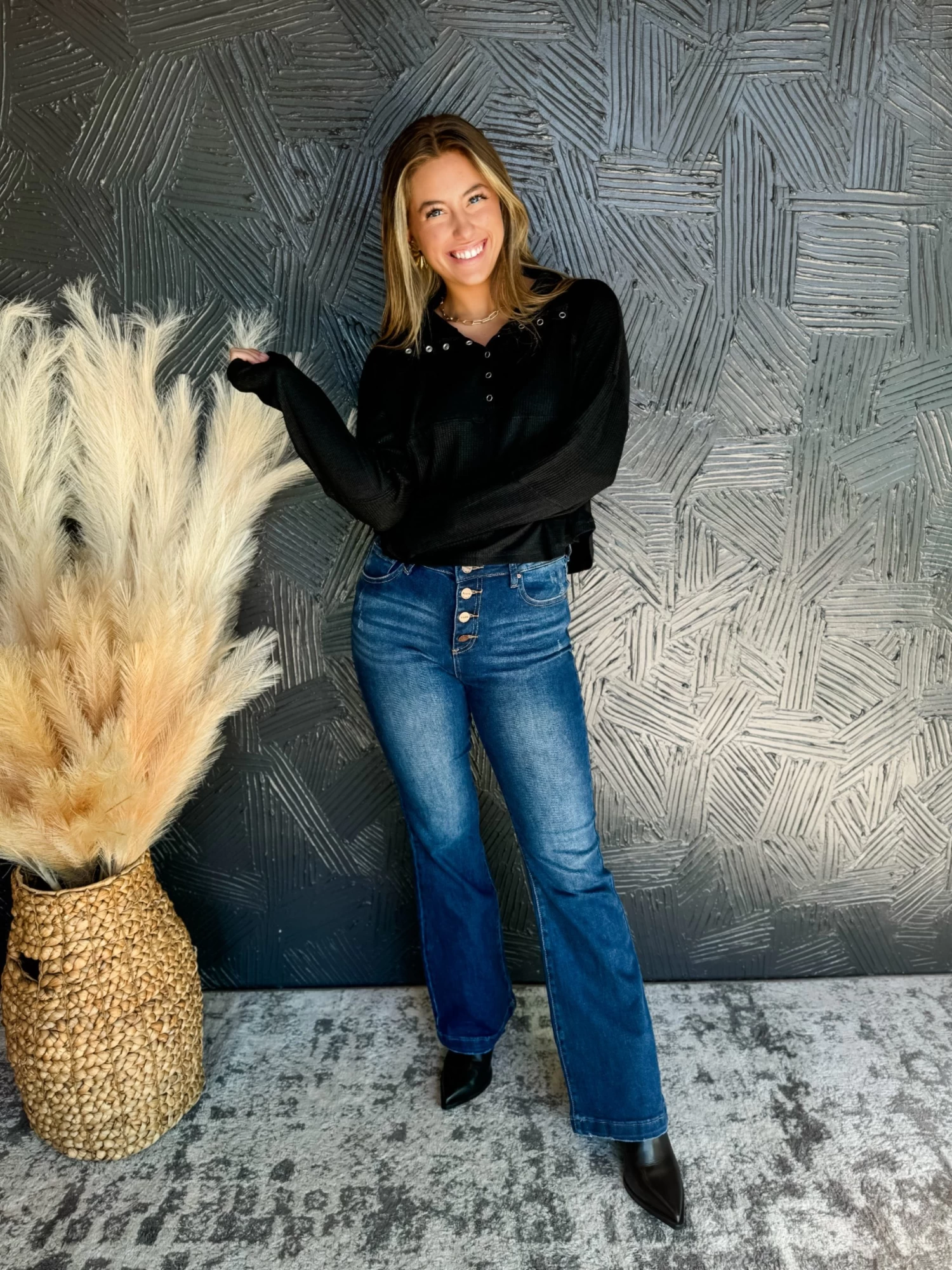Styled With:Ā OurĀ Read My Mind High Rise Boot Cut Jeans and Our Rachell Bootie-BlackĀ Ā