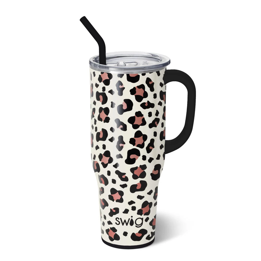Mega sips, less refills π§ Rose gold and black spots bring style and sophistication to this untamable trend!Hydrating has never been easier with our 40oz Mega Mug! The cup holder friendly frame, comfort-grip handle and flexi-straw come together to create their new favorite Swig!