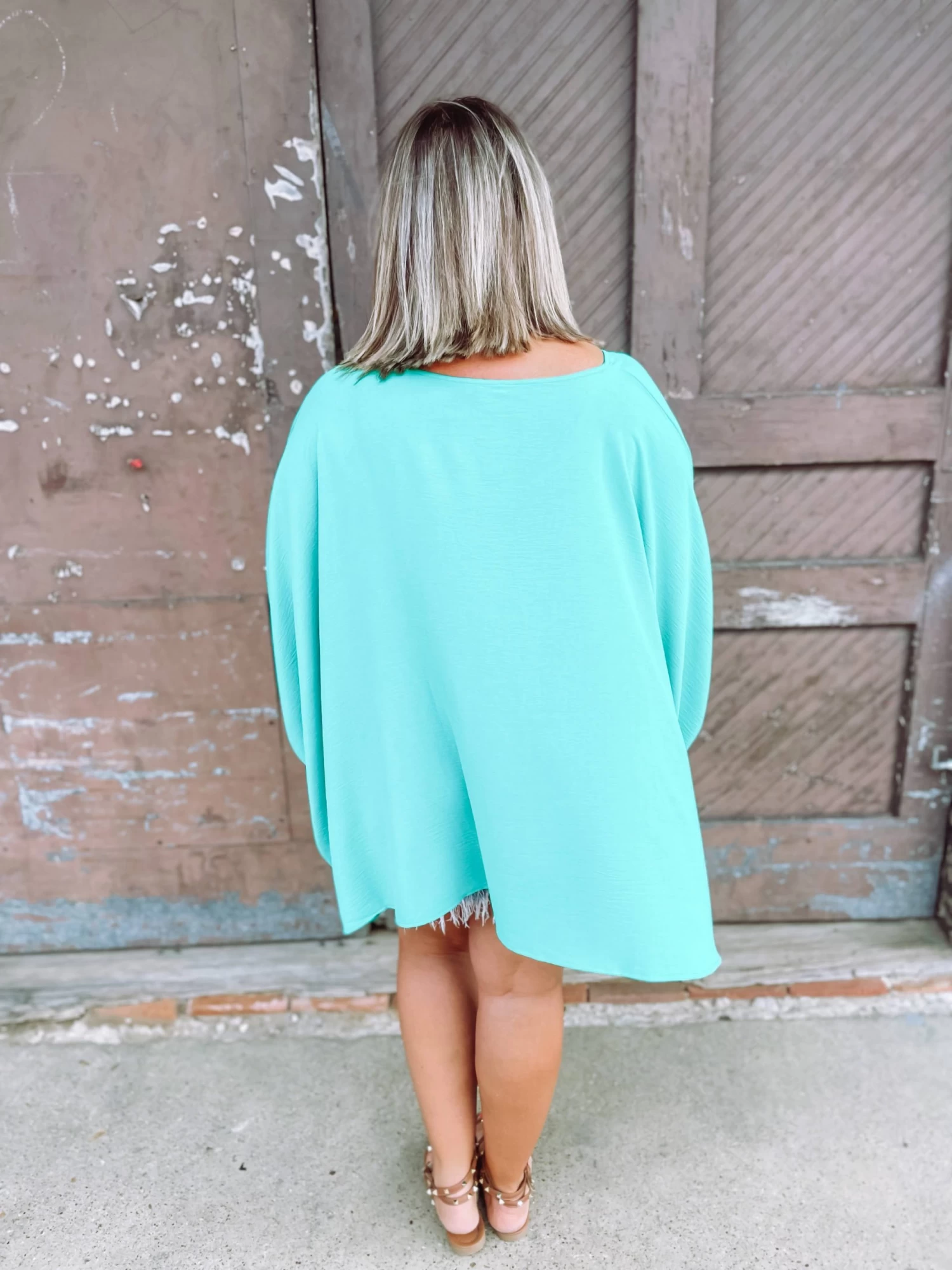 Who doesn’t love a pop of green?! Meet the Mya Tunic Top! Tailored with a v neck line + lightweight, breathable material + angled hem. This Oversized, Tunic Design makes this great for the summer heat! This tunic top will treat you right all year round! Styled with our Shannon Shorts + Mya Sandals.