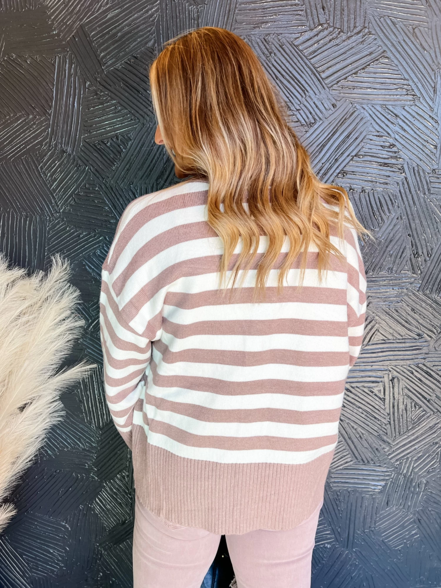 Lisa is wearing a Large. She is 6’0. Bust size 38. Bra size 38DD. Pants size 11/13.