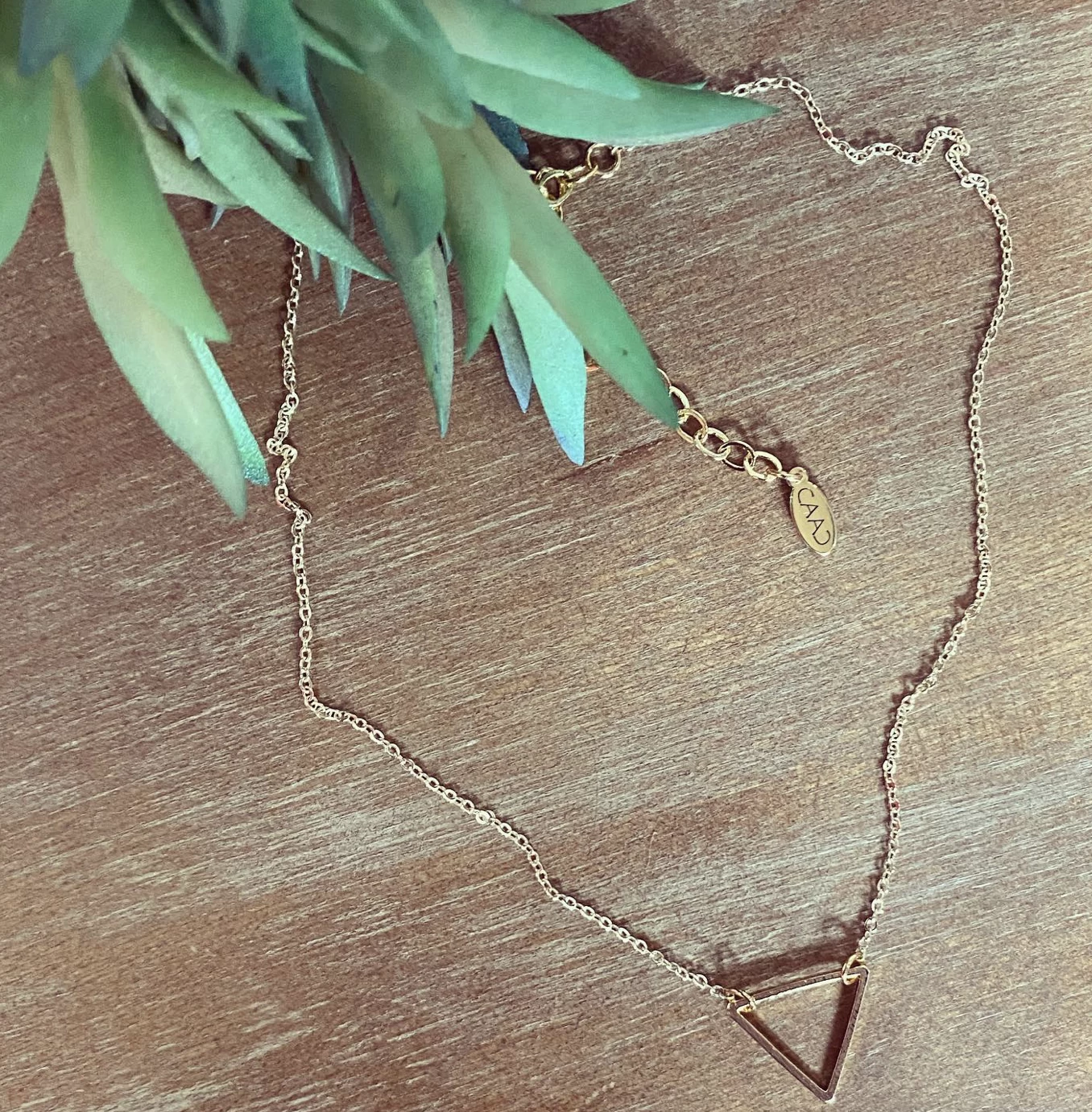 Add the Paris Necklace to cart!! Crafted with a subtle gold triangle detail, this sophisticated piece is perfect for any look that requires a hint of refined sophistication. Indulge in a timeless accessory that will add a touch of class to your collection.