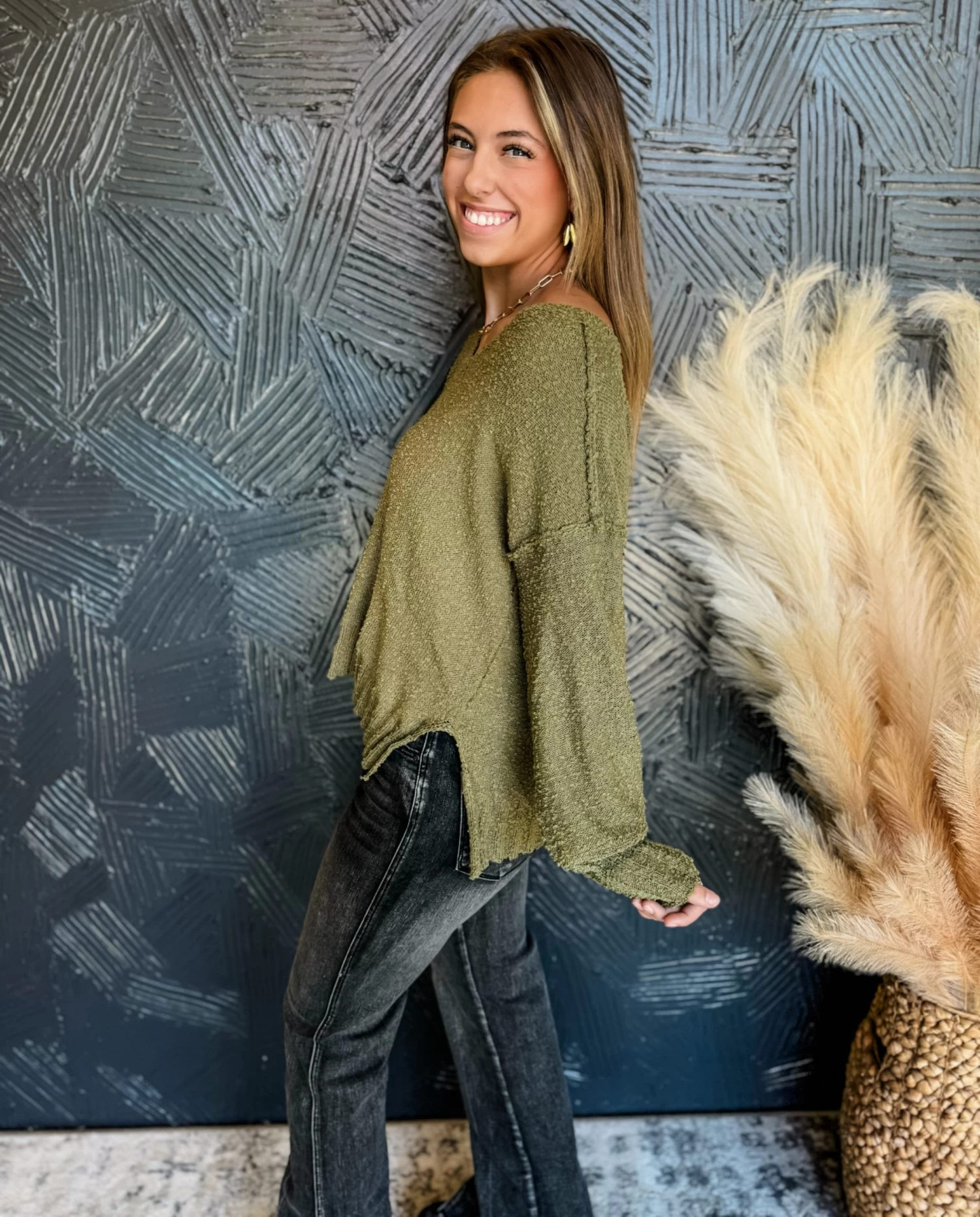 Styled With: Our Time Stands Still High Rise Side Slit Jeans and our Trinity Boots-Dark grey