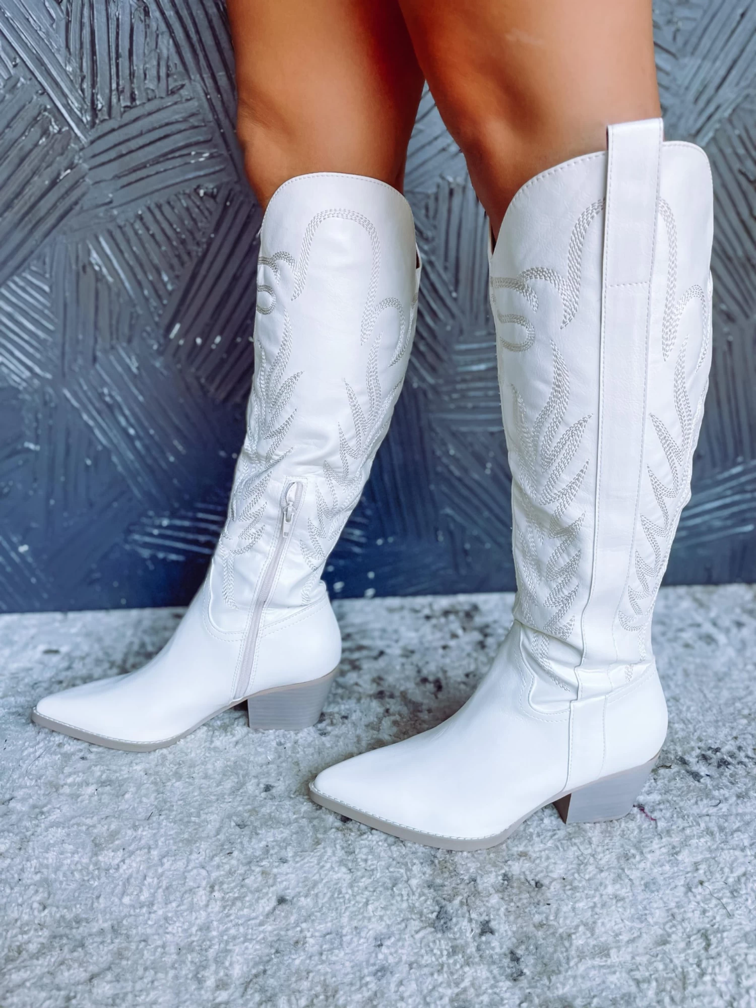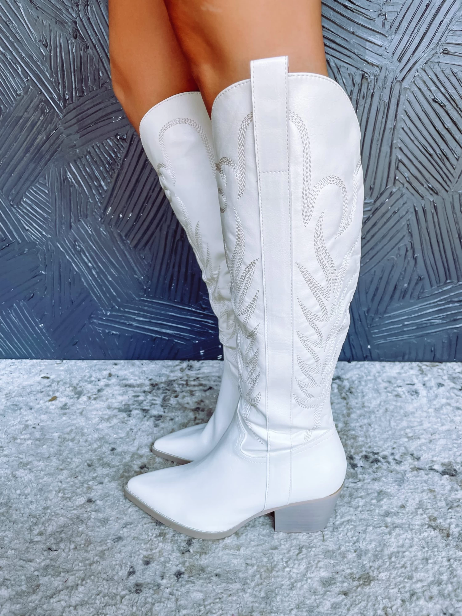 Meet our Samara Boots! Featuring pull tabs, a pointed toe and classic embroidery detailing. Plus, unique flair of a classic western design. A solid grey heel adds sturdiness to every step, while the padded footbed guarantees all day comfort! These are a must have for sure! Grab them while you still can sis!