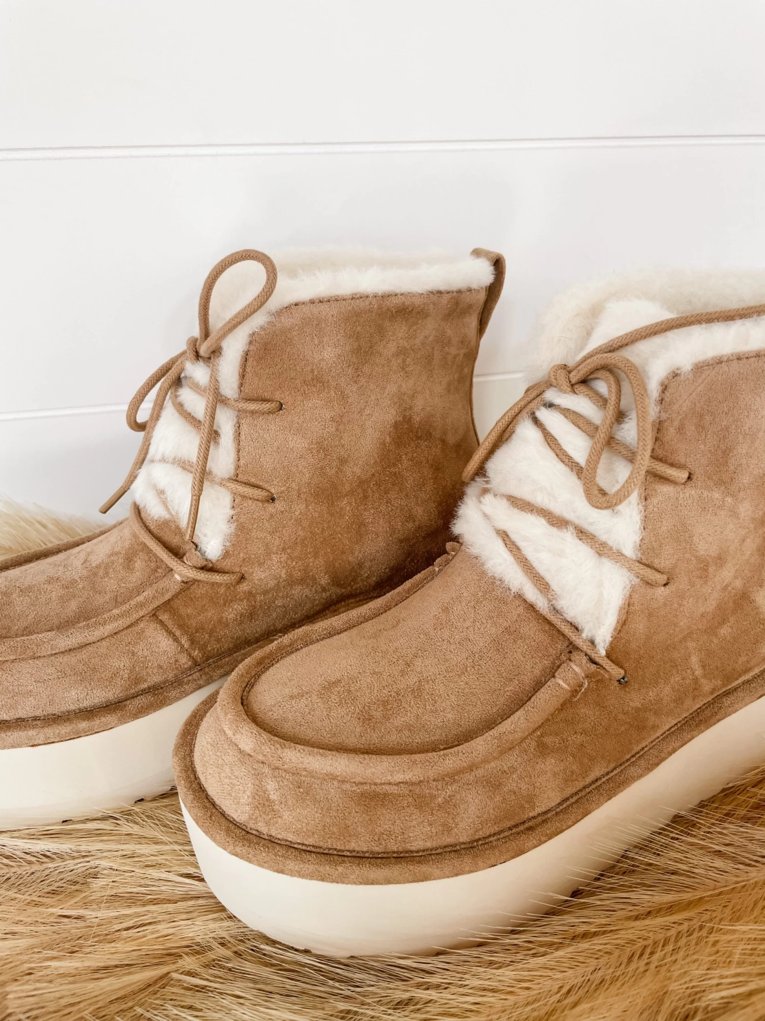 Put your best foot forward with Earnnest Fur Boots! Featuring a platform for a chic look, and warm faux fur to keep your toes toasty all winter long, these sand-colored boots stand out with their subtle tie detail. Style with flare, and look effortlessly elegant – no matter how cold it gets!