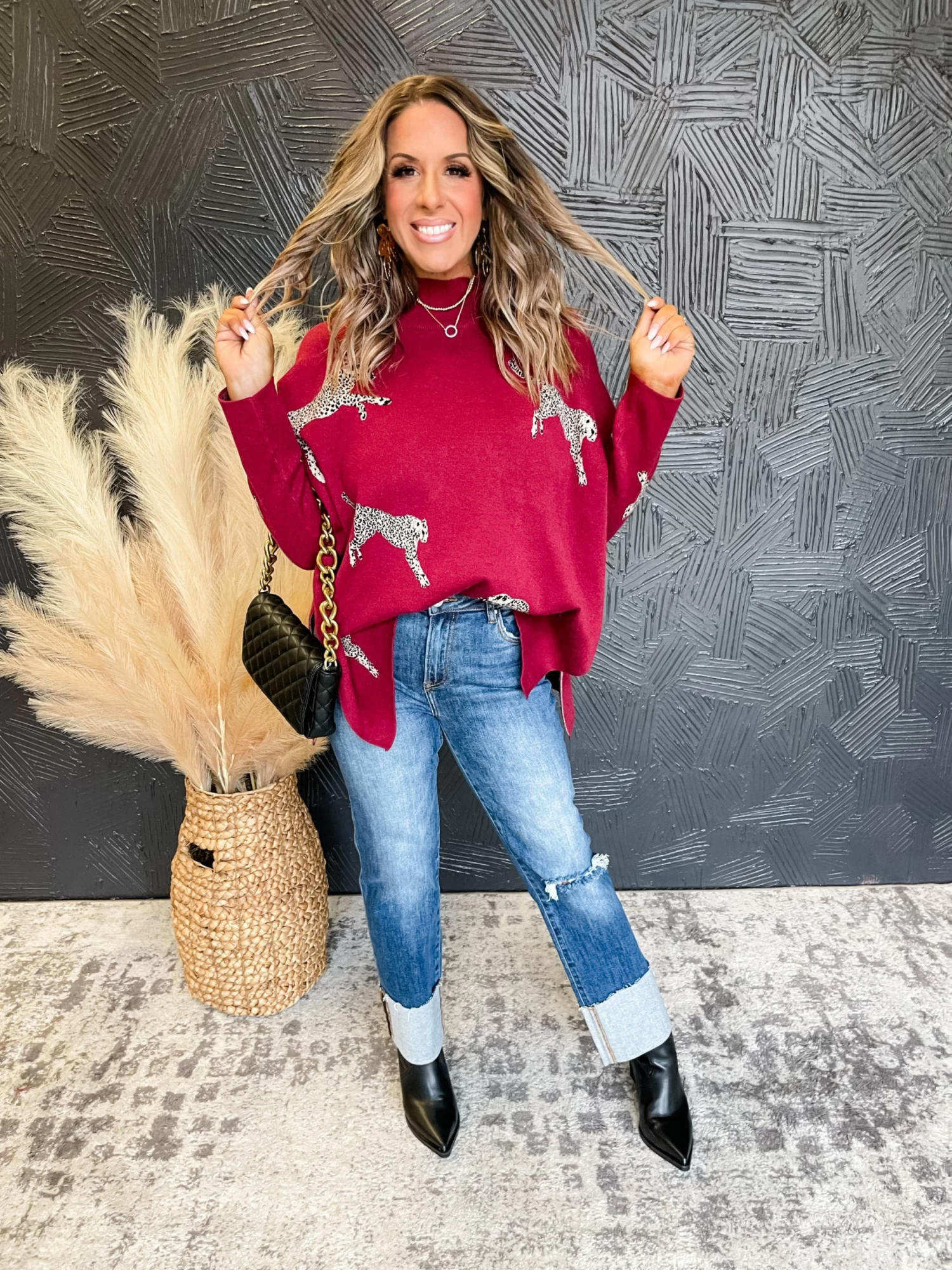 Styled With: Our Looking For You High Rise Cuffed Straight Jeans, Rachell Bootie- Black and Our Dani Quilted Faux Leather Bag
