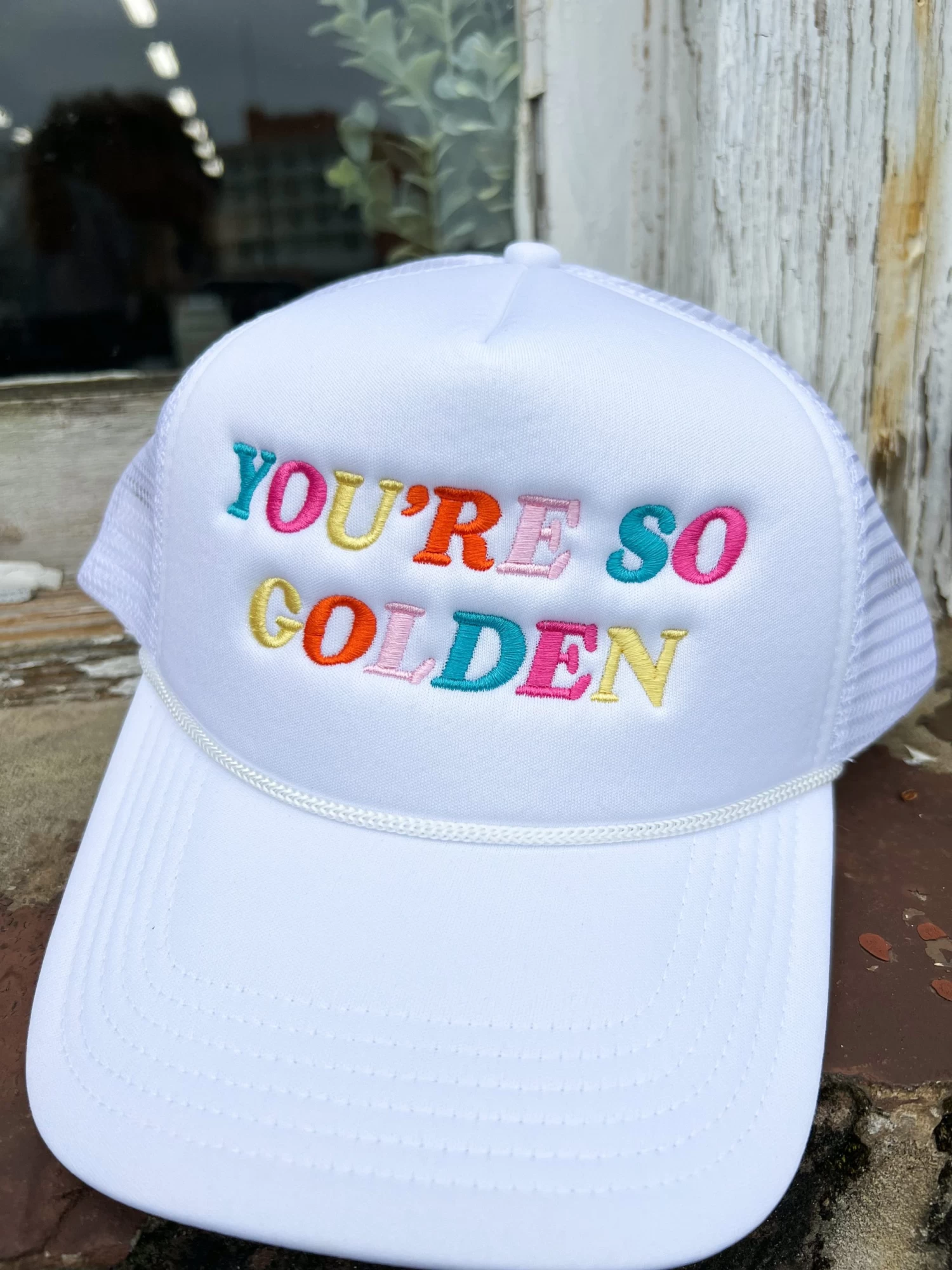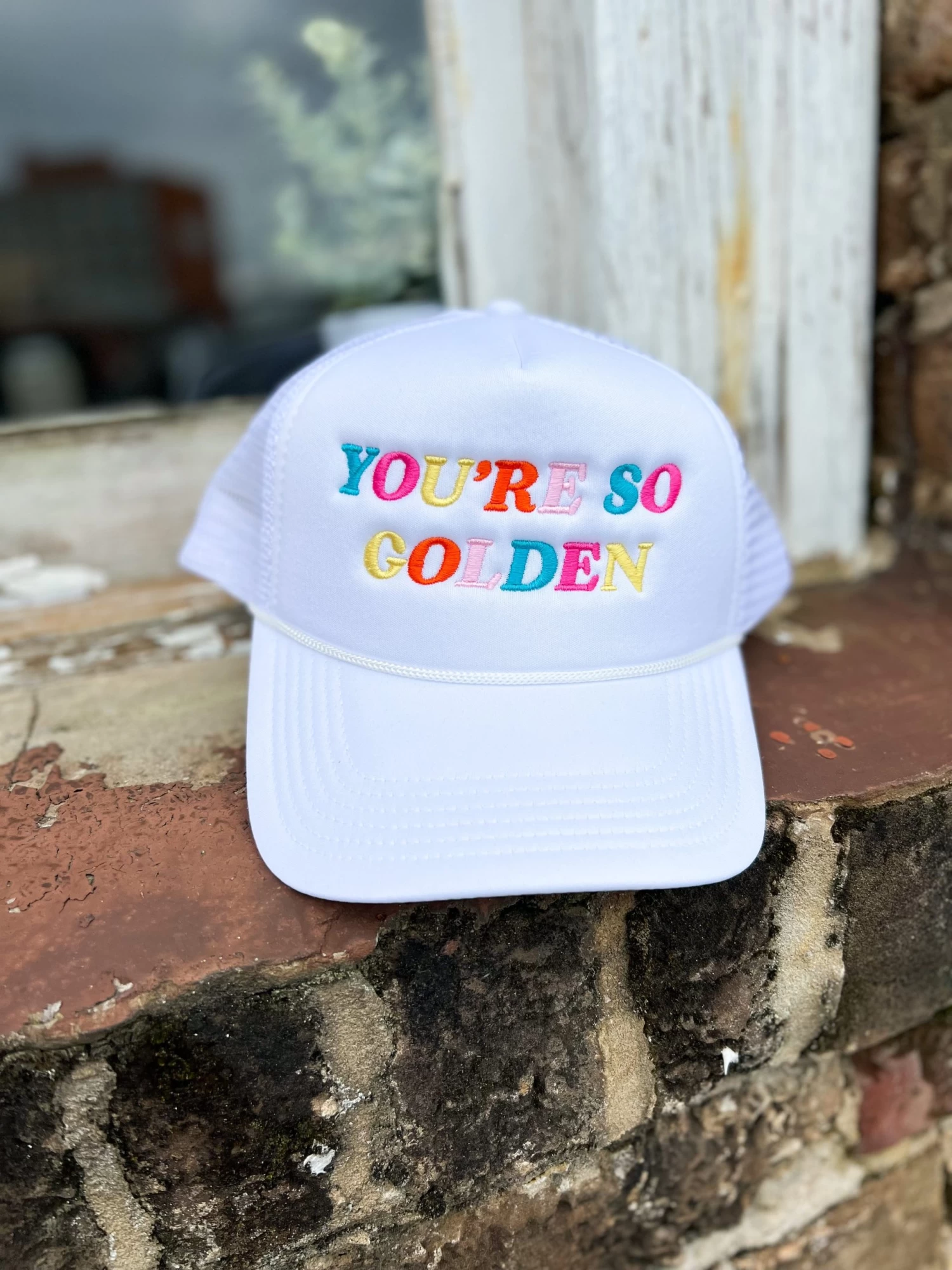 This hat is the perfect accessory for adding a bit of fun and flair to any outfit! Its soft foam construction makes it lightweight and comfy to wear all day, while the colorful ‘You’re So Golden’ embroidery adds just the right touch of attitude and glam. Top off your look with a hat that’s as unique as you are!